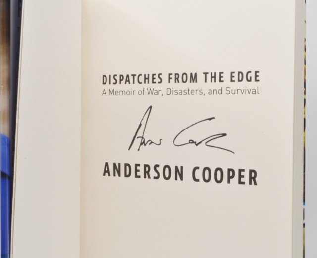 Dispatches From the Edge. Signert. Artikkelnr.: AS185 Anderson Cooper: Dispatches From the Edge. Signert. NOK150,00 inkl. mva. På lager Kjøp Vipps hurtigkasseKjøp nå med Vipps hurtigkasse Del dette Produktinfo Produktanmeldelser (0) Anderson Cooper: Dispatches From the Edge. A Memoir of War, Disasters, and Survival. Signert av Anderson Cooper på tittelbladet. Harper Collind Publishers 2006. 8vo. [2] + 222 s. Orig. bd. med smussomslag. Noe illustrert. Skriv en produktanmeldelse og del dine erfaringer med dette produktet med andre kunder. Email Navn Din vurdering? 1 star 2 star 3 star 4 star 5 star 6 star Oppgi en tittel for anmeldelsen din Skriv inn produktanmeldelsen i feltet under