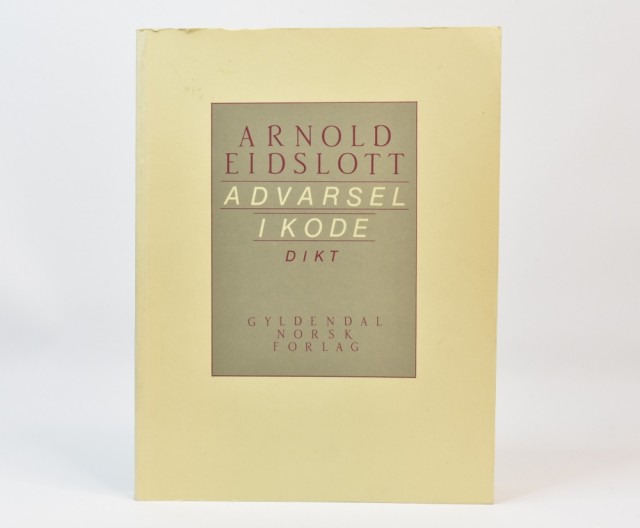 Arnold Eidslott: Advarsel i kode. Artikkelnr.: 02544 Arnold Eidslott: Advarsel i kode. Dikt. NOK100,00 inkl. mva. På lager Kjøp Vipps hurtigkasseKjøp nå med Vipps hurtigkasse Del dette Produktinfo Produktanmeldelser (0) Arnold Eidslott: Advarsel i kode. Dikt. Gyldendal Norsk Forlag, Oslo 1987. 8vo. 170 + [1] s. Orig. omslag. Skriv en produktanmeldelse og del dine erfaringer med dette produktet med andre kunder. Email Navn Din vurdering? 1 star 2 star 3 star 4 star 5 star 6 star Oppgi en tittel for anmeldelsen din Skriv inn produktanmeldelsen i feltet under