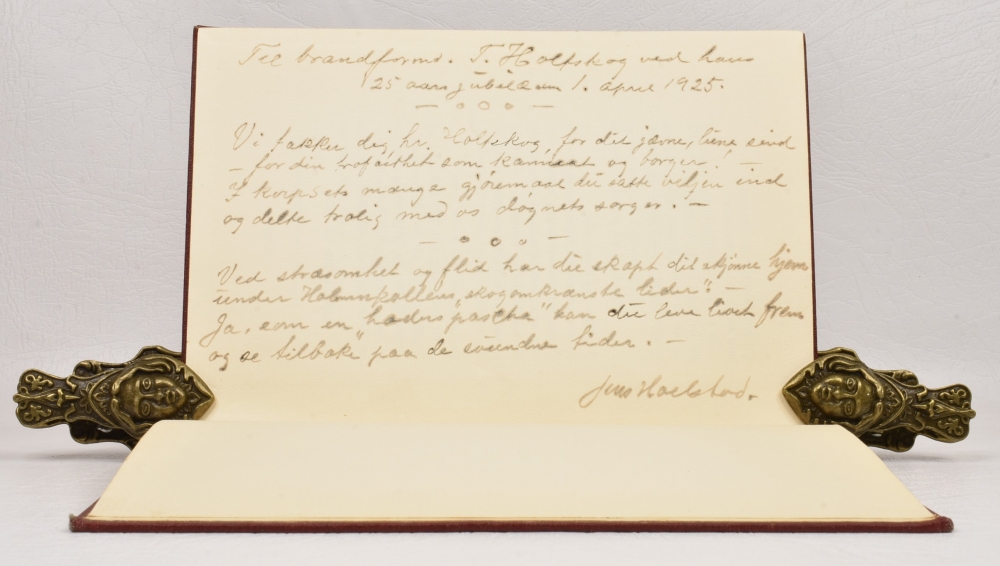 Dedikasjon til brandformd. T. Holtskog? fra Jens Hoelstad på nest siste blad.