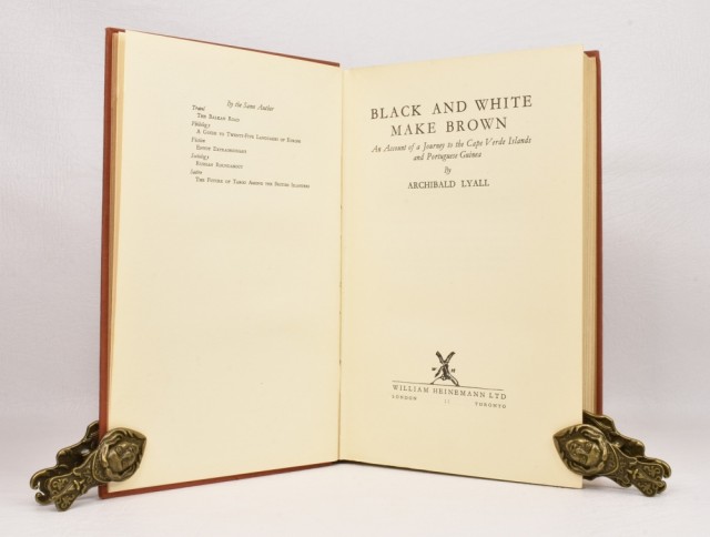 Archibald Lyall: Black and White Make Brown. Artikkelnr.: EX067 Archibald Lyall: Black and White Make Brown. An Account of a Journey to the Cape Verde Islands and Portuguese Guinea. NOK300,00 inkl. mva. På lager Kjøp Vipps hurtigkasseKjøp nå med Vipps hurtigkasse Del dette Produktinfo Produktanmeldelser (0) Archibald Lyall: Black and White Make Brown. An Account of a Journey to the Cape Verde Islands and Portuguese Guinea. William Heinemann, London 1938. 8vo. x + [2] + 303 s. Orig. helsjirtinbd. Illustrert. Kart. Pen. Skriv en produktanmeldelse og del dine erfaringer med dette produktet med andre kunder. Email Navn Din vurdering? 1 star 2 star 3 star 4 star 5 star 6 star Oppgi en tittel for anmeldelsen din Skriv inn produktanmeldelsen i feltet under
