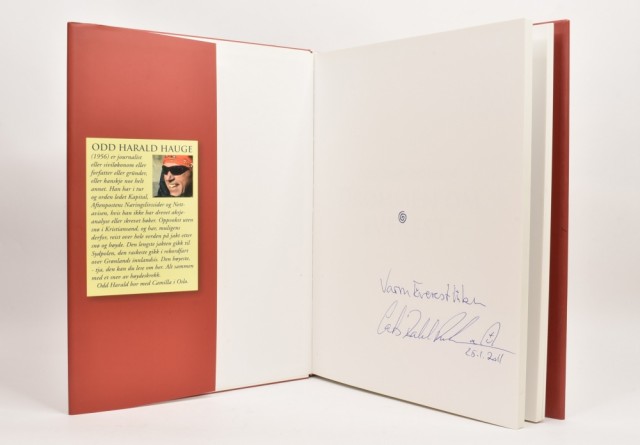 Signert "Varm Everesthilsen" fra Cato Zahl Pedersen 25. 1. 2011. på forsatsbladet.