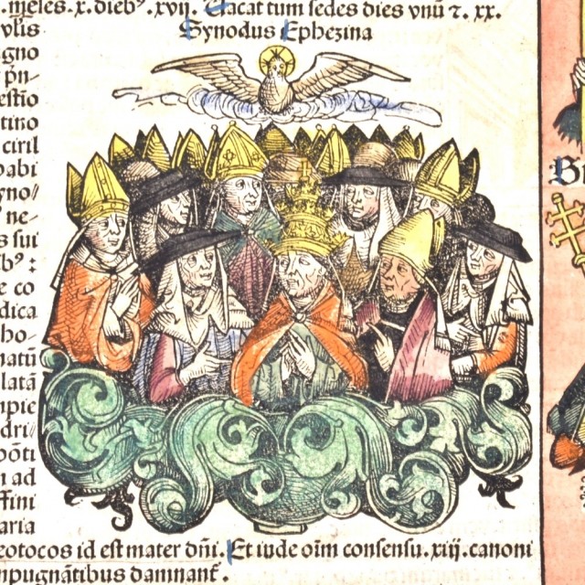 På baksiden vises to forskjellige illustrasjoner. Det første var det tredje økumeniske rådet som ble samlet i Efesos hvor de bestred at Jesus ble født utelukkende av Maria og ikke av Gud, med Kyrillos av Alexandria og pave Celestine som sterkt motsatte seg denne troen, noe som resulterte i erklæringen av den salige jomfru som Theotokos (mor til Herre) og fordømmelsen av kjetterske doktriner gjennom 13 ordinanser. Den andre typen illustrasjoner er av en slekt som inkluderer 4 paver: Celestinus, Sixtus den tredje, Leo den første og Paven Hilarius.