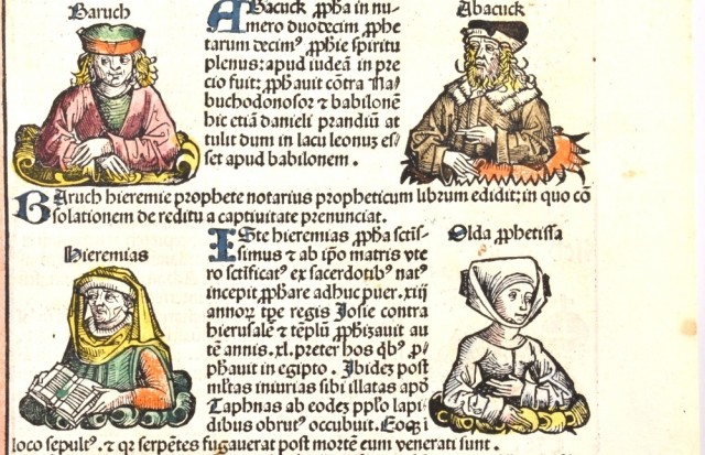 På baksiden av folio LV er prestelinjen avbildet: Hilkia, Asarja, Seraja, Jozadak. Deretter blir profetene illustrert: Sefanja, Uria, Baruk, Habakkuk, Jeremia, Hulda, David, Esekiel og Murdoch. Til slutt vises også «Mennene i den brennende ovnen», Mizahel, Hananiah og Azariah.