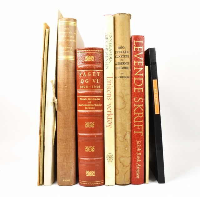 Utgitt av Norsk Bokbinder- og Kartonnasjearbeiderforbund, Oslo 1950. 8vo. 654 + [1] s. Orig. halvskinnbd. med 5 opphøyde ryggbånd og topp gullsnitt. Rikt illustrert.