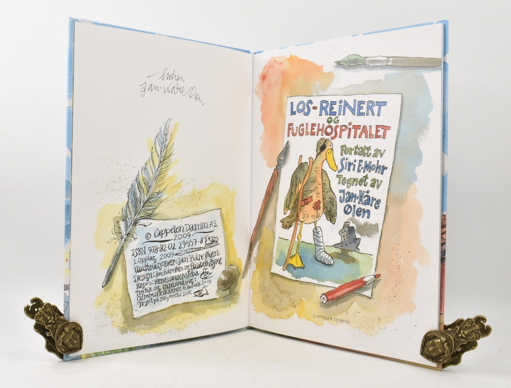 Siri E. Mohr - J. Kåre Øien: Los Reinert og fuglehospitalet. Signert. Artikkelnr.: BA067 Siri E. Mohr - J. Kåre Øien: Los Reinert og fuglehospitalet. Signert av Jan-Kåre Øien på kolofonside. NOK150,00 inkl. mva. På lager Kjøp Vipps hurtigkasseKjøp nå med Vipps hurtigkasse Del dette Produktinfo Produktanmeldelser (0) Siri E. Mohr - J. Kåre Øien: Los Reinert og fuglehospitalet. Signert av Jan-Kåre Øien på kolofonside. Cappelen Damm 2009. Liten 4to. Upaginert [48 s.] Orig. kartonert innbd. Rikt illustrert. Skriv en produktanmeldelse og del dine erfaringer med dette produktet med andre kunder. Email Navn Din vurdering? 1 star 2 star 3 star 4 star 5 star 6 star Oppgi en tittel for anmeldelsen din Skriv inn produktanmeldelsen i feltet under