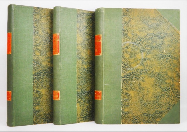 Noen småriper. Foldekart med tre rift. Diskrè navnestempel på friblad og tittelblad på i alle tre bind.