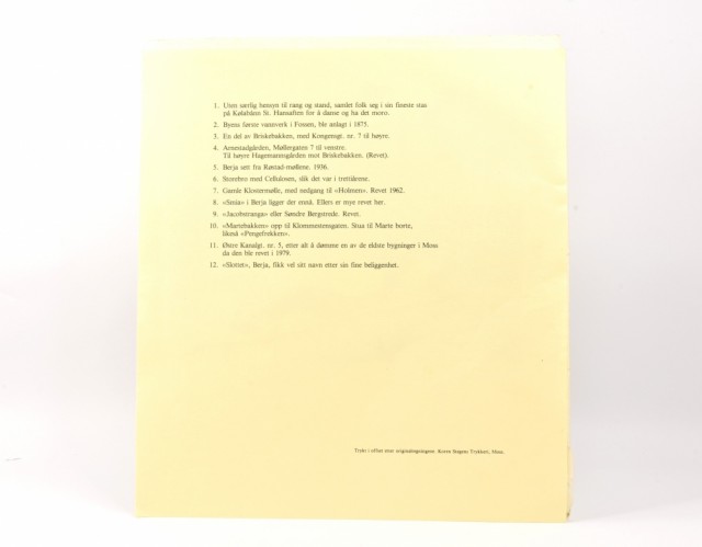 Chr. Stenersen: 12 tegninger fra det gamle Moss. Artikkelnr.: 50752 Chr. Stenersen: 12 tegninger fra det gamle Moss. NOK200,00 inkl. mva. På lager Kjøp Vipps hurtigkasseKjøp nå med Vipps hurtigkasse Del dette Produktinfo Produktanmeldelser (0) Chr. Stenersen: 12 tegninger fra det gamle Moss. Trykt i offset etter originaltegningene. Koren Stegens Trykkeri, Moss. Uten år. Stor 4to. 12 tegninger i den originale mappen. Mappen litt slitt. Tegningene meget pene. Skriv en produktanmeldelse og del dine erfaringer med dette produktet med andre kunder. Email Navn Din vurdering? 1 star 2 star 3 star 4 star 5 star 6 star Oppgi en tittel for anmeldelsen din Skriv inn produktanmeldelsen i feltet under