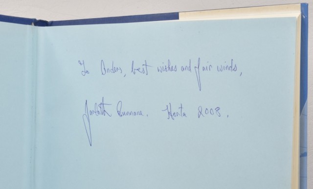 Jarlath Cunnane: Northabout. Signert. Artikkelnr.: 1136 Jarlath Cunnane: Northabout. Sailing the North East and North West Passages. NOK500,00 inkl. mva. På lager Kjøp Vipps hurtigkasseKjøp nå med Vipps hurtigkasse Del dette Produktinfo Produktanmeldelser (0) Jarlath Cunnane: Northabout. Sailing the North East and North West Passages. Dedikasjon fra Jarlath Cunnane på forsatsblad. The Collin Press, Reprinted 2007. 4to. vii + [3] + 238 s. Orig. bd. med smussomslag. Rikt illustrert. Meget pen. Skriv en produktanmeldelse og del dine erfaringer med dette produktet med andre kunder. Email Navn Din vurdering? 1 star 2 star 3 star 4 star 5 star 6 star Oppgi en tittel for anmeldelsen din Skriv inn produktanmeldelsen i feltet under
