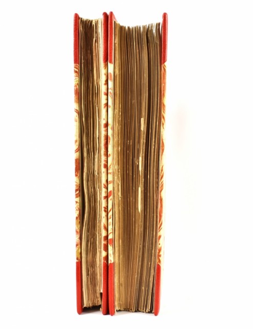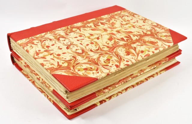 Nydelige priv. halvskinnbd. med 4 opphøyde ryggbånd og marmorerte dekler.