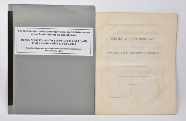 Nordenskiöld joined noted Swedish geologist Otto Torell on a polar expedition to Spitsbergen, where he discovered plant fossils of the Tertiary period. In 1864, he led his own expedition, promoted by the Royal Swedish Academy of Sciences, primarily for the purpose of mapping Spitsbergen. ”The major purpose of the expedition was to carry out a reconnaissance for an arc measurement in Spitsbergen and to investigate the islands to the east of the archipelago.., in later life Nordenskiold would reminisce about the voyage as the most agreeable of his polar travels.” Hulth, Nordenskiold-Bibliografi 28.