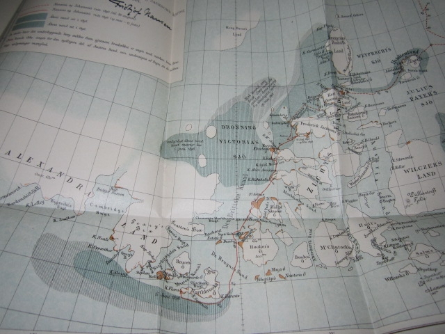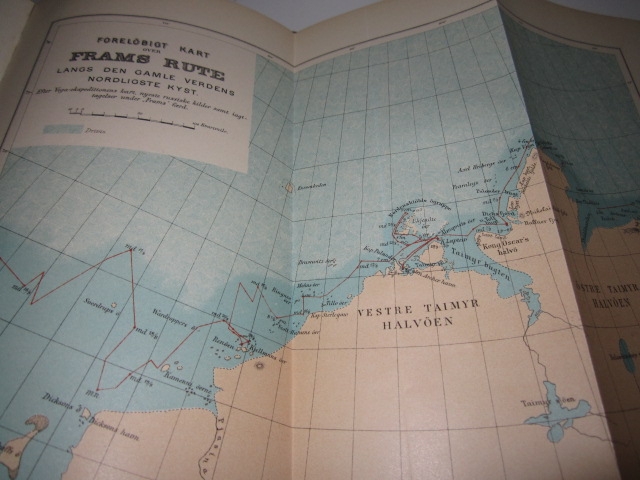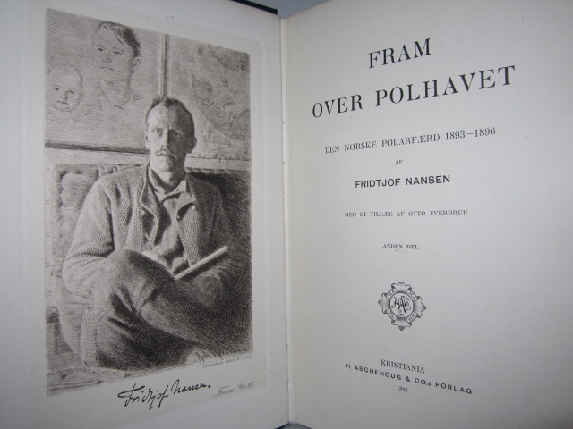 H. Aschehoug & Co.s Forlag. Kristiania 1897. 8vo. (7) + 526 + (5) + 553 + (1) s. Orig. grønne dekorerte helsjirtingbd. med marmorerte snitt. 3 foldekart og en foldeplansje. Frontispise av Fridtjof Nansen i bind II. Frontispise av deltagerne i den norske polarfærd 1893-96. i bind I. Rikt illustrert. Meget pent sett.