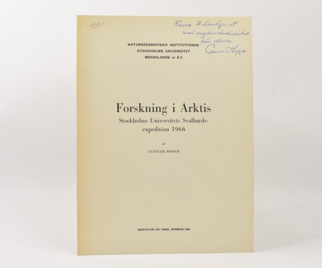 Gunnar Hoppe: Forskning i Arktis. Artikkelnr.: 1555 Gunnar Hoppe: Forskning i Arktis. Stockholms Universitets Svalbards-expedition 1966. Dedikasjon til K. Z. Lundquist fra Gunnar Hoppe på tittelblad. NOK100,00 inkl. mva. På lager Kjøp Vipps hurtigkasseKjøp nå med Vipps hurtigkasse Del dette Produktinfo Produktanmeldelser (0) Gunnar Hoppe: Forskning i Arktis. Stockholms Universitets Svalbards-expedition 1966. Dedikasjon til K. Z. Lundquist fra Gunnar Hoppe på tittelblad. Särtryck ur Ymer, Årsbok 1966. 8vo. 212-224 s. Orig. omslag. Rikt illustrert. Skriv en produktanmeldelse og del dine erfaringer med dette produktet med andre kunder. Email Navn Din vurdering? 1 star 2 star 3 star 4 star 5 star 6 star Oppgi en tittel for anmeldelsen din Skriv inn produktanmeldelsen i feltet under