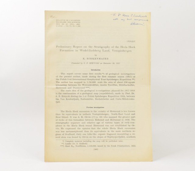 K. Birkenmajer: Preliminary Report on the Stratigraphy of the Hecla Hoek Formation in Wedel-Jarlsberg Land, Vestspitsbergen.
