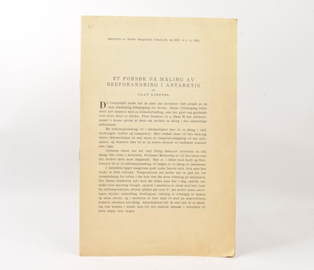 Olav Liestøl: Et forsøk på måling av breforandring i Antarktis. Artikkelnr.: 1565 Olav Liestøl: Et forsøk på måling av breforandring i Antarktis. NOK100,00 inkl. mva. På lager Kjøp Vipps hurtigkasseKjøp nå med Vipps hurtigkasse Del dette Produktinfo Produktanmeldelser (0) Olav Liestøl: Et forsøk på måling av breforandring i Antarktis. Særtrykk av Norsk Geografisk Tidsskrift, bd. XIV, h. 1-4, 1953. 8vo. [1] + 153-157 s. Stiftet rygg. Uoppskåret. Illustrert. Skriv en produktanmeldelse og del dine erfaringer med dette produktet med andre kunder. Email Navn Din vurdering? 1 star 2 star 3 star 4 star 5 star 6 star Oppgi en tittel for anmeldelsen din Skriv inn produktanmeldelsen i feltet under