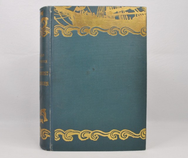 H. Aschehoug & Co. Kristiania 1907. 8vo. 511 + [1] s. Orig. dekorert helsjirtingbd. Rikt illustrert. Foldekarter. 2 små flekker på frontdekkel. Exlibris på dedikasjon bladet. Et pent og solid eksemplar.