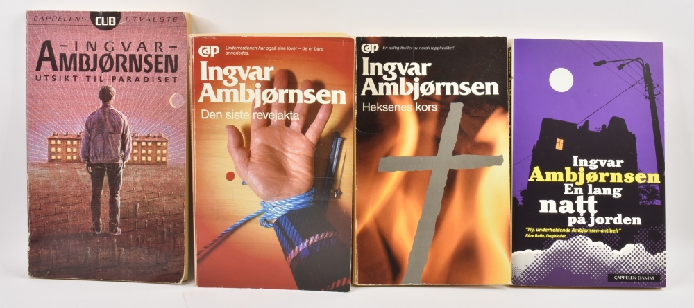 Ingvar Ambjørnsen x 4 Artikkelnr.: SK204 Ingvar Ambjørnsen x 4 Den siste revejakta. Cap 1988. Heksenes kors. Cap 1988. Utsikt til paradis. Cub 1994. En lang natt på fjorden. Cappelen Damm 2008. NOK100,00 inkl. mva. På lager Kjøp Vipps hurtigkasseKjøp nå med Vipps hurtigkasse Del dette Produktinfo Produktanmeldelser (0) Ingvar Ambjørnsen x 4 Den siste revejakta. Cap 1988. Heksenes kors. Cap 1988. Utsikt til paradis. Cub 1994. En lang natt på fjorden. Cappelen Damm 2008. Skriv en produktanmeldelse og del dine erfaringer med dette produktet med andre kunder. Email Navn Din vurdering? 1 star 2 star 3 star 4 star 5 star 6 star Oppgi en tittel for anmeldelsen din Skriv inn produktanmeldelsen i feltet under