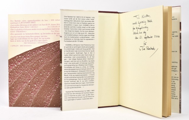 Dedikasjon fra Over Røsbak på forsatsblad.