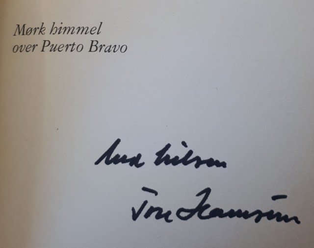 Tore Hamsun: Mørk himmel over Puerto Bravo. Signert Artikkelnr.: SK063 Tore Hamsun: Mørk himmel over Puerto Bravo. Roman. Omslagsillustrasjon: Olav Hagen. Gyldendal Norsk Forlag - Oslo 1986. 8vo. 229 + (1) s. Orig. bd. med smussomslag. Ørliten rift i smussomslag. Signert. NOK250,00 inkl. mva. På lager Kjøp Vipps hurtigkasseKjøp nå med Vipps hurtigkasse Del dette Produktinfo Produktanmeldelser (0) Tore Hamsun: Mørk himmel over Puerto Bravo. Roman. Omslagsillustrasjon: Olav Hagen. Gyldendal Norsk Forlag - Oslo 1986. 8vo. 229 + (1) s. Orig. bd. med smussomslag. Ørliten rift i smussomslag. Signert Tore Hamsun på forsatsblad. Skriv en produktanmeldelse og del dine erfaringer med dette produktet med andre kunder. Email Navn Din vurdering? 1 star 2 star 3 star 4 star 5 star 6 star Oppgi en tittel for anmeldelsen din Skriv inn produktanmeldelsen i feltet under