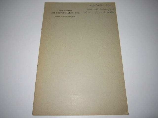 Olav Midtthun: «Eit festelig årsmøte» Signert Artikkelnr.: ST008 Olav Midtthun: «Eit festelig årsmøte» Særprent av «Syn og Segn» 1958. U. u. 8vo. (1) + 7 s. Orig. omslag. Dedikasjon til Johs. a. ? signert Olav Mitthun på omslagets front. NOK100,00 inkl. mva. På lager Kjøp Vipps hurtigkasseKjøp nå med Vipps hurtigkasse Del dette Produktinfo Produktanmeldelser (0) Olav Midtthun: «Eit festelig årsmøte» Særprent av «Syn og Segn» 1958. U. u. 8vo. (1) + 7 s. Orig. omslag. Dedikasjon til Johs. a. ? signert Olav Mitthun på omslagets front. Skriv en produktanmeldelse og del dine erfaringer med dette produktet med andre kunder. Email Navn Din vurdering? 1 star 2 star 3 star 4 star 5 star 6 star Oppgi en tittel for anmeldelsen din Skriv inn produktanmeldelsen i feltet under