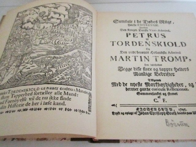 C. F. : Samtale i de Dødes Riige, Første Entrevue Imellem Den Kongel. Danske Vice-Admiral, Petrus af Tordenskiold Og Den viidt berømte Hollanske Admiral Martin Tromp, som indeholder Begge disse store og tappre Helters Mandige Bedrifter.