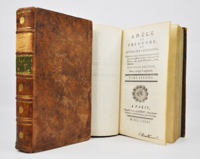 Adèle et Thèodore ou lettres sur l`èducation; Contenant tous les principes relatifs aux trois diffèrens plans d`èducation des Princes, des jeunes Personnes, & des Hommes.